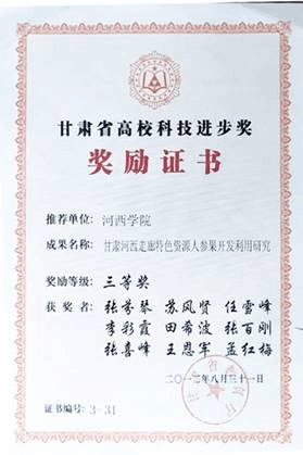 团队自成立以来,紧紧围绕当地农业生产实际和产业发展,开展科学研究和技术服务,先后开展小麦、玉米、马铃薯等作物高产创建、玉米杂交制种栽培技术、中药菘蓝栽培技术、玉米制种连作障碍机理与耕地质量提升等科学研究。完成省级和地厅级项目10余项,校企合作项目2项,获省科技进步二等奖1项,技术发明一、三等奖各1项,地厅级奖13项,校级教学成果奖1项,建成校级精品课程1门,出版专著2部,参编教材1部,在国内外权威期刊发表论文30余篇,SCI收录1篇。