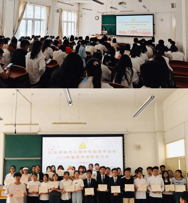 获奖学生代表杨彦珪和康启杰分别作了获奖感言,他们通过讲述在大学期间学习、生活、实习实践、参与第二课堂活动的经历和经验,勉励现场全体同学,号召全体农学学子要时刻铭记并践行新时代大学生的使命与担当,要牢记习近平总书记给中国农业大学科技小院的同学们的回信精神,志存高远,脚踏实地,懂得奉献感恩,努力成为一名优秀的、可堪大用的大学生。