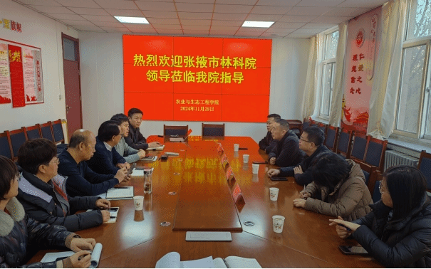 会上,学院负责人介绍了学校及学院发展历程、学科专业及教师科研等情况。张掖市林科院领导就林科院的发展情况做了详细介绍。双方就科研合作、研究生培养、学生实习等多个方面进行了深入交流和探讨。双方认为,要聚焦农业领域的发展需求,在牧草种质资源开发、林果业种子资源库建设、食用菌产业、荒漠化生态治理、乡村振兴等方面开展合作;通过联合申报和实施科技项目,共同推动相关科技成果的推广及转化应用,为服务地方经济发展提供坚实的科技支撑;通过聘请行业导师的方式,联合培养研究生;开展党支部共建活动;建立稳定的校外实习基地,为我院园艺专业的学生提供丰富的实践机会和平台。