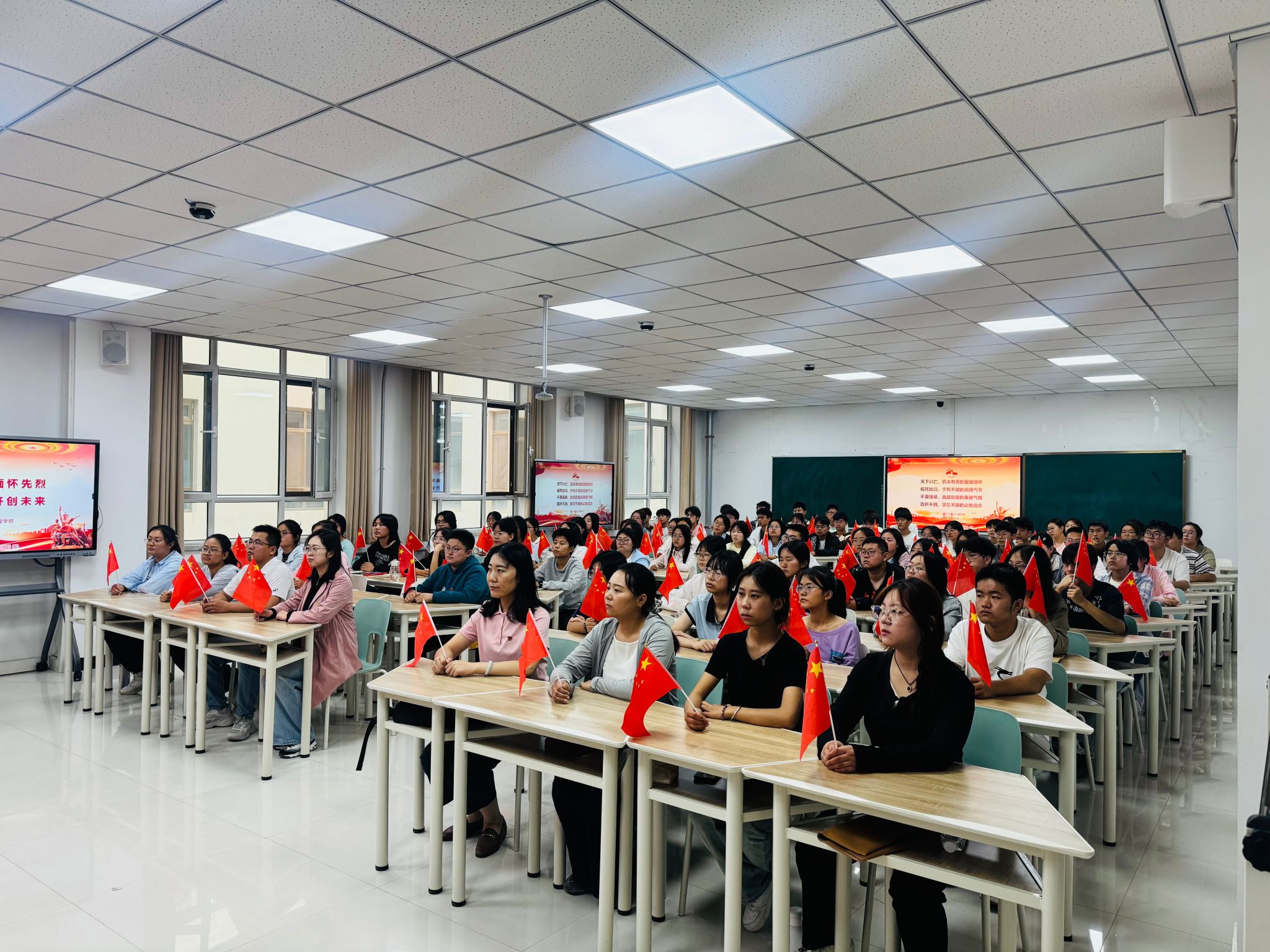 9月3日上午9时,纪念中国人民抗日战争暨世界反法西斯战争胜利80周年大会在北京天安门广场隆重举行。yl9193永利集团组织师生在多个分会场集中观看大会直播实况,激发广大师生的爱国热情和民族情怀。