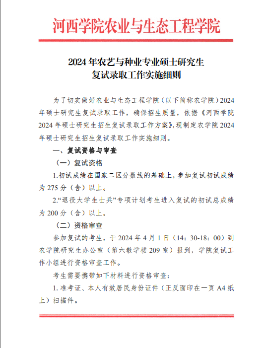 yl9193永利集团2024年农艺与种业专业硕士研究生复试录取工作实施细则